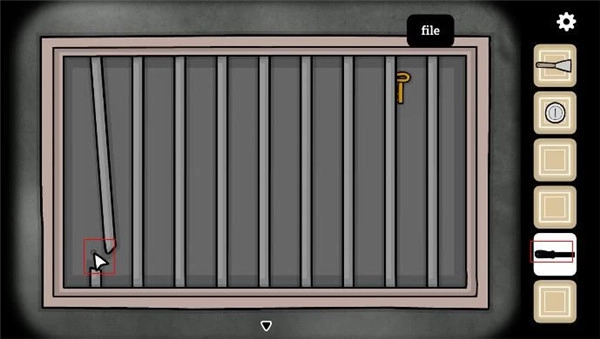 10、我们返回放置箱子的地点,查看排水管,使用锉刀取下断裂的水管,得到断裂的水管与钥匙。