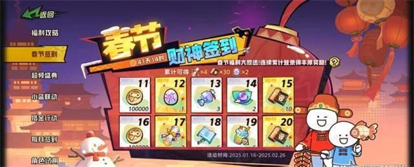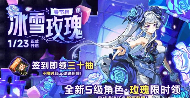 首先是春节期间的签到福利,玩家登录游戏即可领取攻击30抽限时卡池的抽数,限时池角色也能尽情抽取,这无疑是给玩家发放的过年红包。不仅如此,奖励还涵盖技能卷轴、高级露珠(元气精灵升级道具)、高级通用秘籍等实用资源,既为玩家节省开支,又能减轻游戏负担。