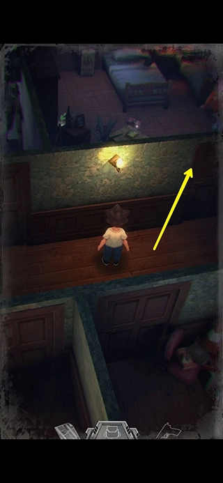 这个箱子是储物箱,能够存放物品(由于男主背包容量有限,暂时用不上的东西可以放进储物箱里)。杂物间的门需要钥匙才能打开,钥匙位置用红圈做了标识。走到图中所示的位置,按照箭头指示的方向面对这个铁制置物架,松开***后,长按屏幕任意位置,就能朝着男主所面向的方向推动物品,将架子推开后,从墙壁的空缺处进入另一个房间。