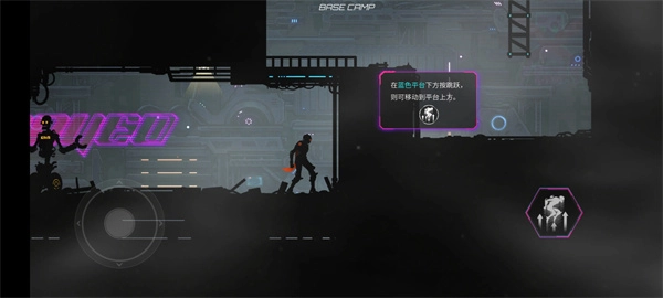 6、如下图所示,当玩家遇到这类障碍时,只需先点击跳跃,再点击冲刺,就能成功跳上平台。