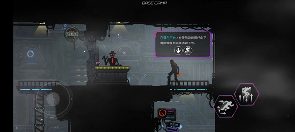 8、玩家在蓝色平台使用下跳即可移动到下方;
