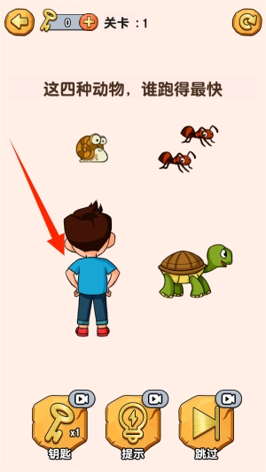 2、按照关卡给出的提示去达成指定目标,比如从四个选项里快速挑选出在陆地上奔跑速度最快的动物。