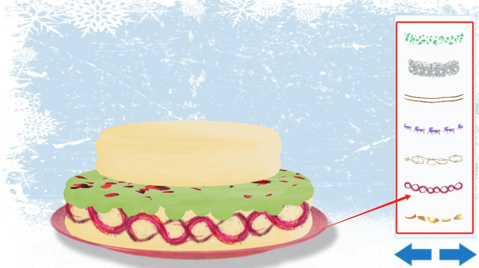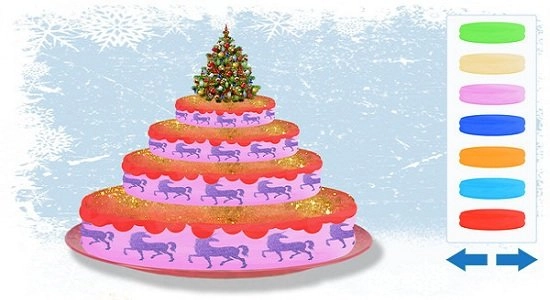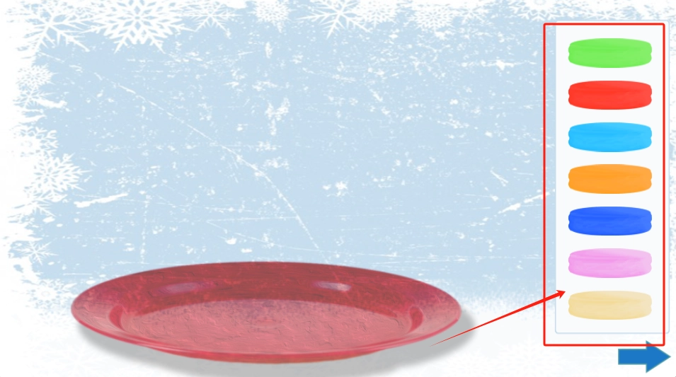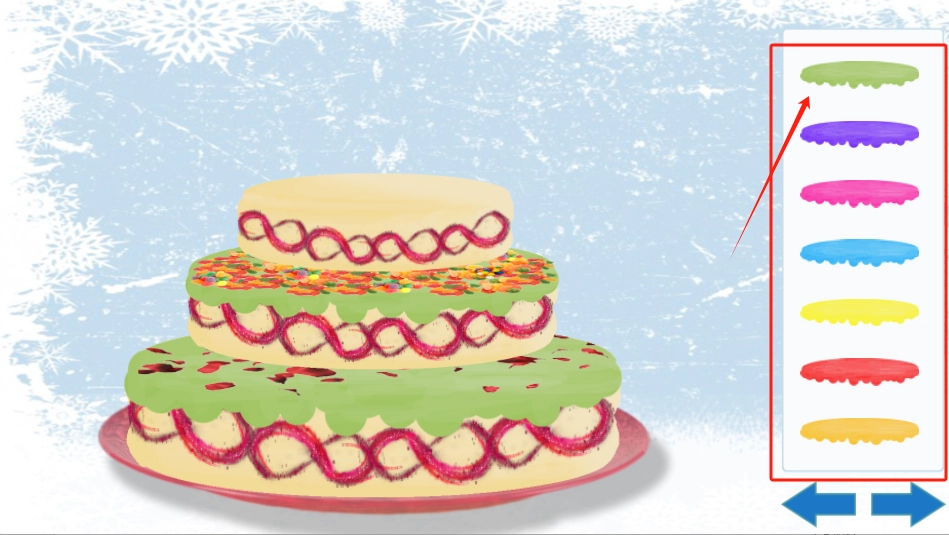 1、点击右侧的彩色圆片,挑选一个你喜欢的颜色来装饰圣诞蛋糕。