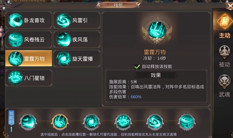 技能效果:召唤风雷法阵,对场上多个目标施加多段伤害