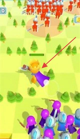 3、操控头戴皇冠的角色,率领紫蓝军团,向红色敌军发起冲锋并展开战斗,借助阵型优势击败对手,从而推进关卡进度。