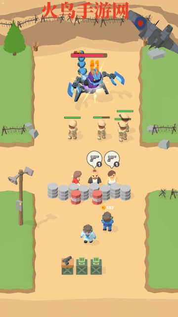 在《放置军队》这款游戏里,你得招募更多工人,升级机器设备,这样才能提高生产效率。