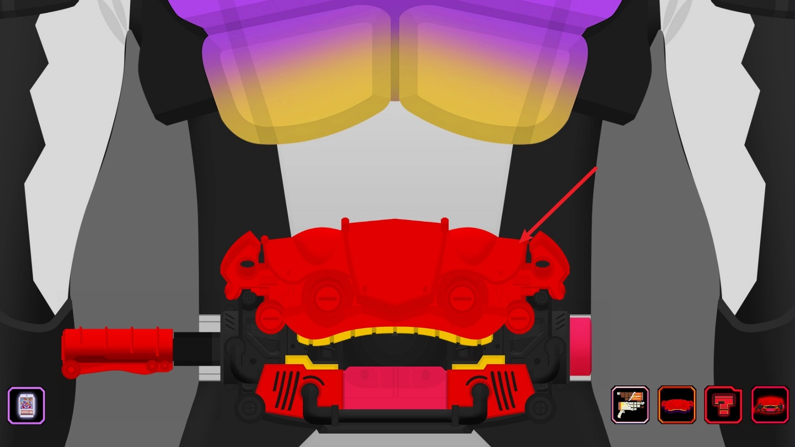 5、随后扣紧腰带,摁下右侧的按钮,此时藏在里面的装置就会开启,摇动左侧的摇杆就能完成变身啦!