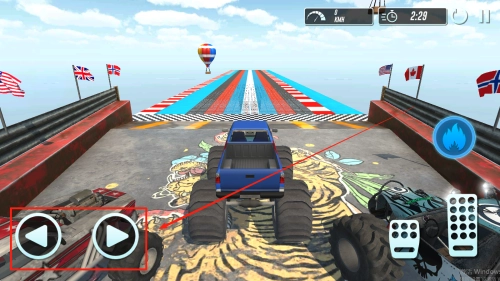 3、借助虚拟按键实现对赛车的精准操控,进而完成高难度的飞跃以及平衡动作。