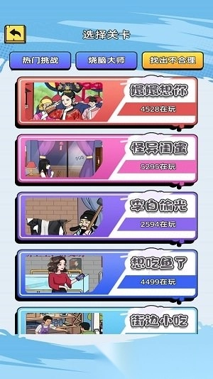 轻松找茬为你带来抖音上超火的烧脑解谜类益智闯关小游戏,在这里你可以变身为小侦探,尽情发挥逻辑思维与天马行空的脑洞,仔细观察每个细节、收集每一条线索,解开所有关卡的谜题。游戏涵盖了找茬、找出不合理、解谜等多种热门挑战玩法,类型十分丰富。