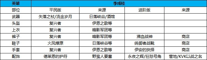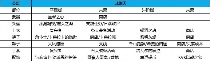 建议最后还是走暗影军团伊恩之歌之类的活动给的复兴者套装,提升弓兵:15%攻击,18%防御,没有的时候上亦可以选择日落峡谷的指挥官重铠,裤子选日落峡谷的流放者胫甲,头盔用没得选,只能用宝箱或者野蛮人营地捡的凤翅盔,手套圣女之歌。武器方面可以选择抽奖和日落峡谷给的流金岁月,没有的时候可以选日落峡谷的失落之杖过渡,鞋子选择火凤燎原。配饰比较稀有,还是有啥用啥,但是首推野蛮人要塞掉落的永夜之辉,能增加5%技能伤害。
