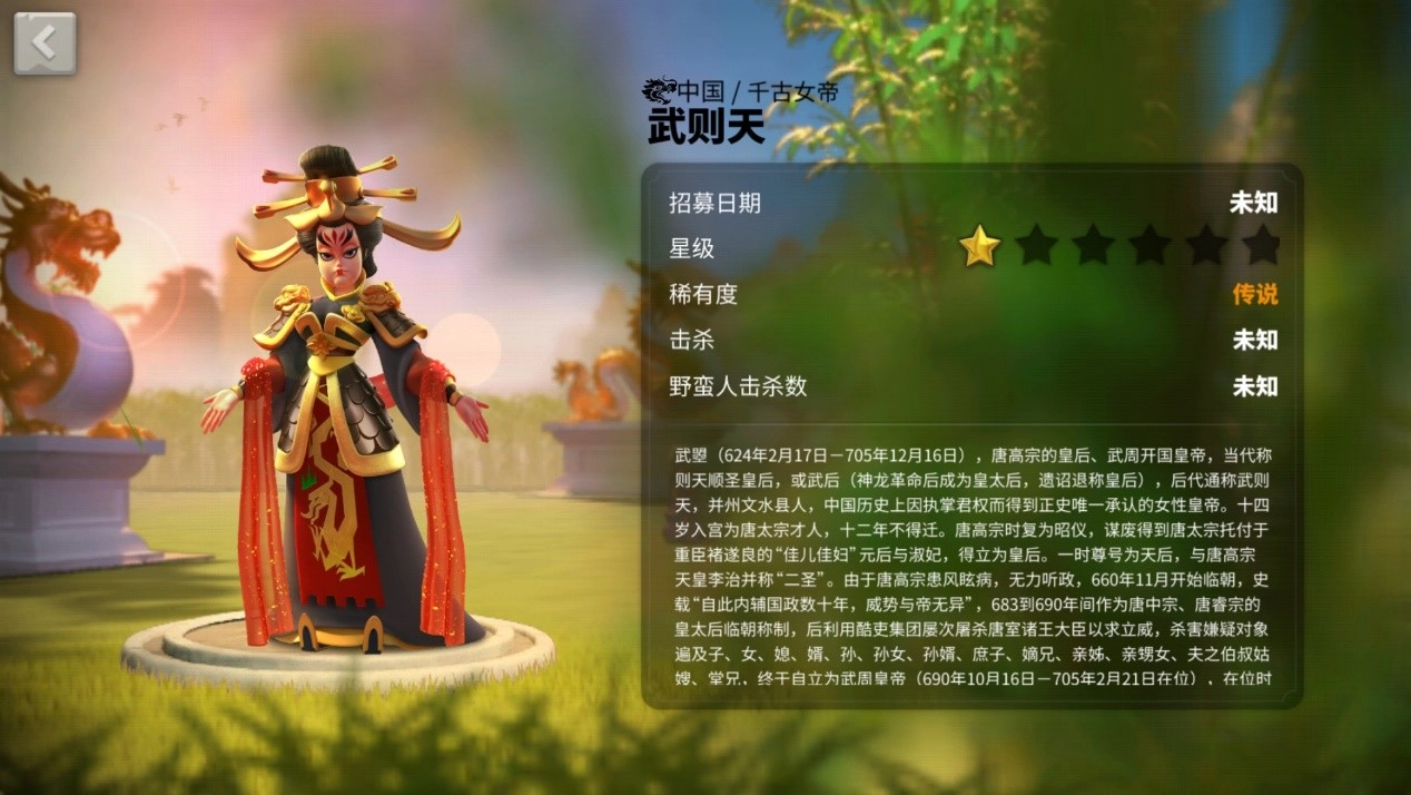 武则天的特性同样是稳扎稳打,属于防御型的驻防将领,因此生命值方面的收益依旧十分可观。