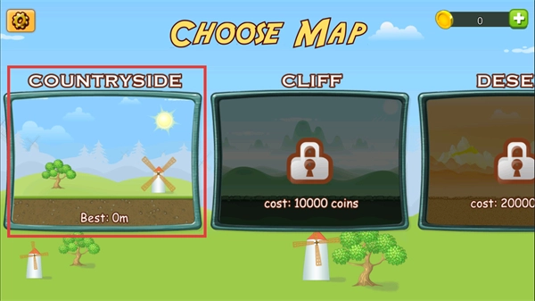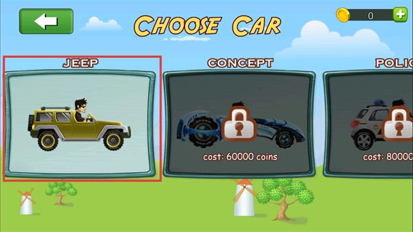 2、初始选择【JEEP】车辆,通过游戏获取金币,增强性能。