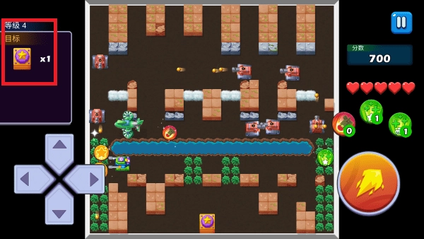- 收集道具、生命包和弹药箱,以增强坦克的能力。