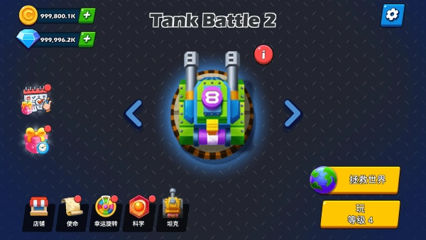 - 可升级的坦克:解锁全新坦克,还能为它们定制更坚固的装甲、更强大的武器以及更出色的速度。