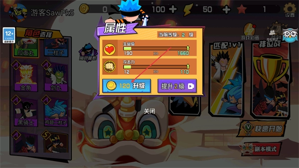 2、打开角色的属性界面,消耗对应金币点击升级按钮,可提升角色的生命值和攻击力增强战斗能力。