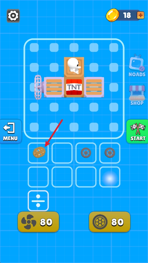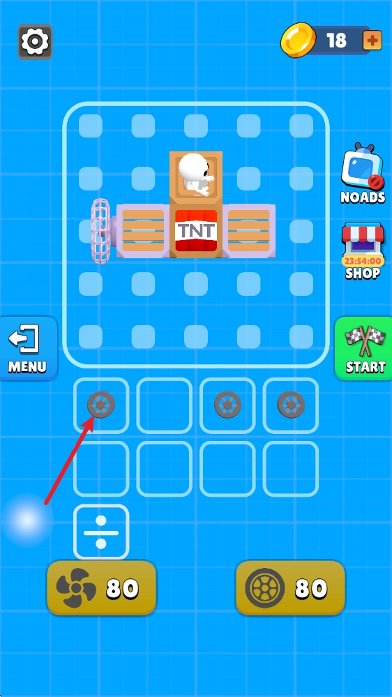 5、汽车组装完成后,我们就能进入场景开始挑战了,点击屏幕就能让风扇转动,为汽车提供前进的动力。