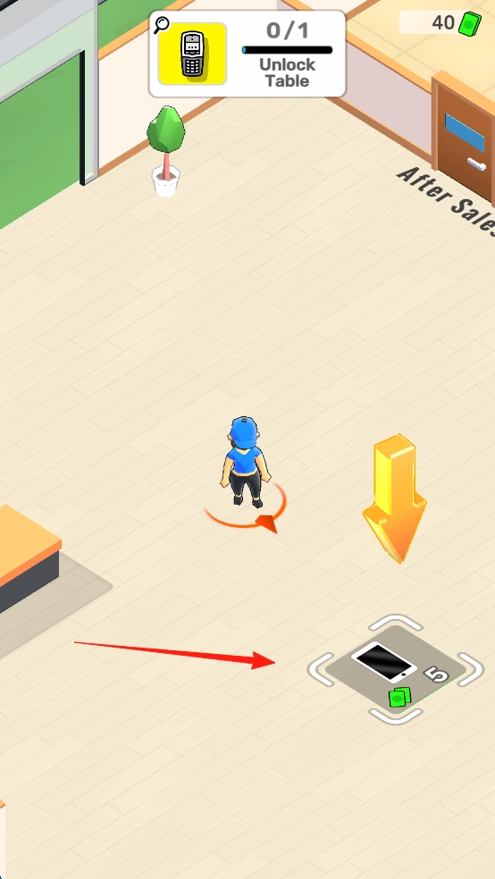 3、前往标注为红箭头的“UnlockTable”点位,消耗5点资源解锁桌子,以此提升店铺运营效率并推进关卡进度。
