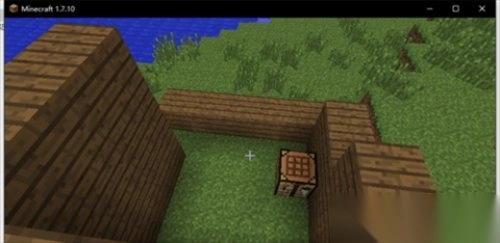 2)把树砍倒后,按下键盘上的E键打开合成栏,将树木放入其中合成所需的木材,再用木材合成工具箱。