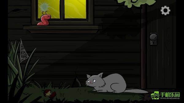第二关流程:先点击门把,猫咪会出现;接着点击蛛网,再点击烂苹果,虫子会吐出浆液,猫咪就会离开;之后点击猫咪,它会再次返回;此时点击门上的树影,就能进入洞穴;在洞穴里快速点击四个按钮,出来后点击猫咪,猫咪会死亡;最后点击门把,即可通关。
