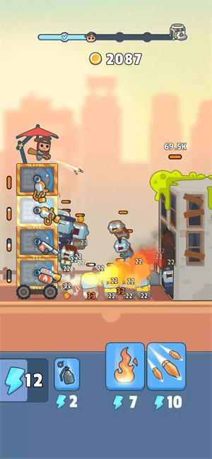 用各式各样的方块搭建一座高塔,再在塔顶配备最高效的武器。