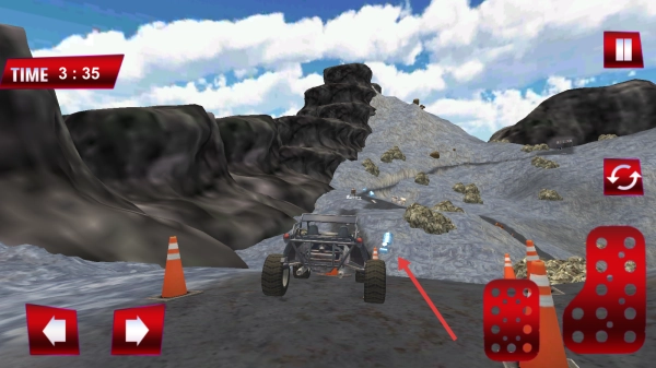 2、在山地赛道上,通过左右箭头控制方向,利用右侧按键调节速度,避开路锥与岩石,冲过陡坡。