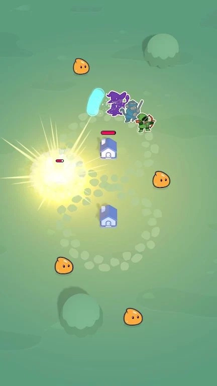 2.英雄会在村庄周边巡逻,主动攻击前来侵扰的怪物;并且随着村庄规模的扩大,玩家能够安排更多英雄,构建起更坚固的防御布局。
