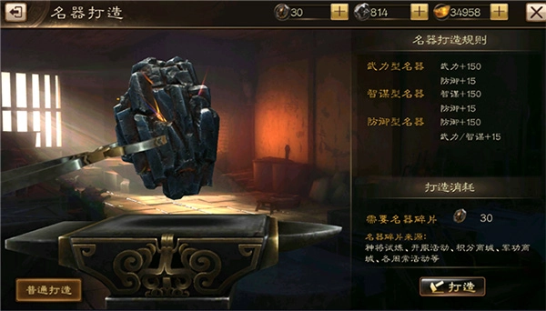 注意!名器并非只能直接获取,当你收集到足够数量的名器碎片后,就能前往铁匠铺直接打造名器啦!
