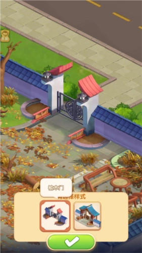 9、挑选你心仪的大门样式,勾选确认就行,接下来,玩家就得用心装饰自己的餐厅了。