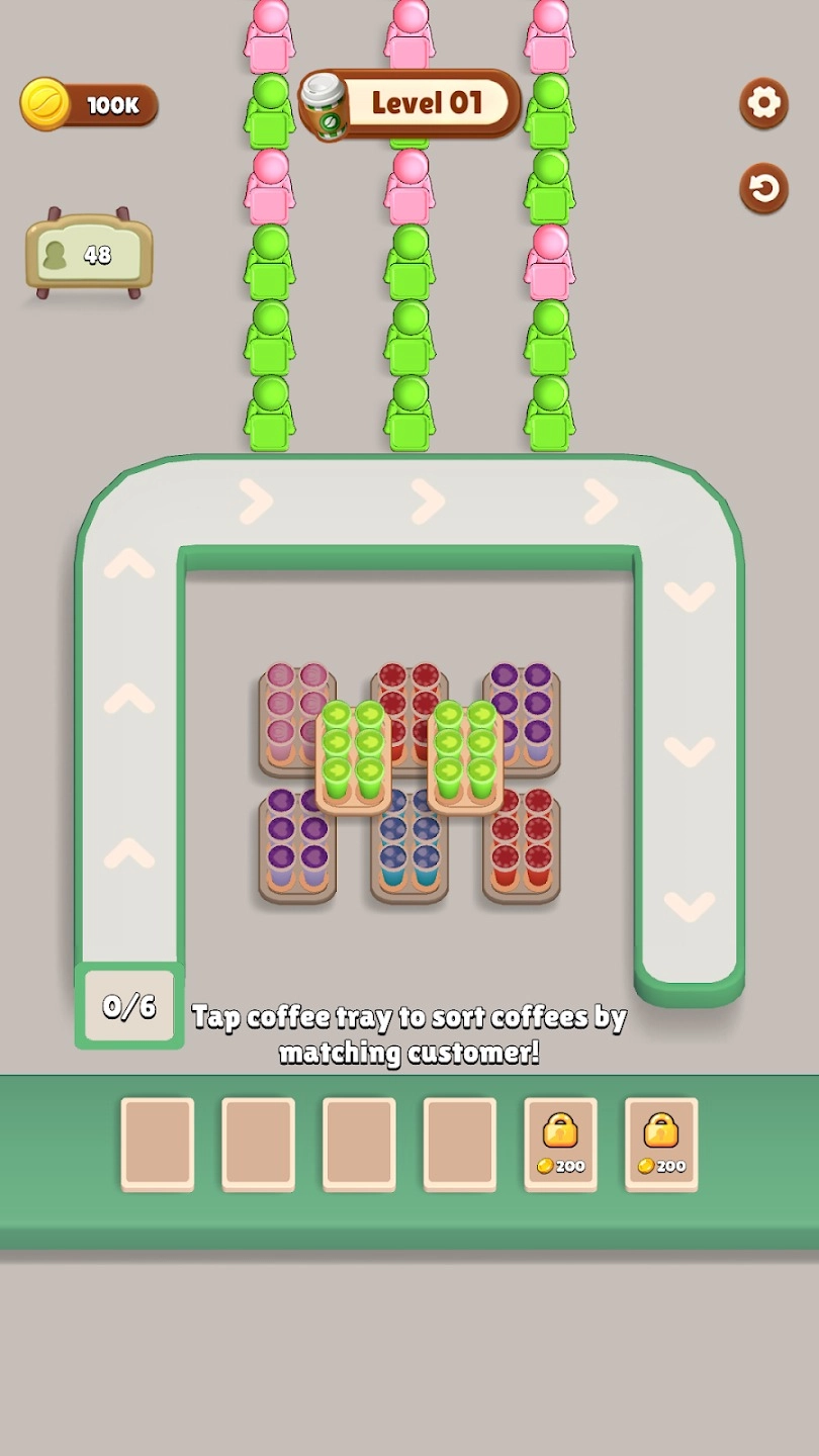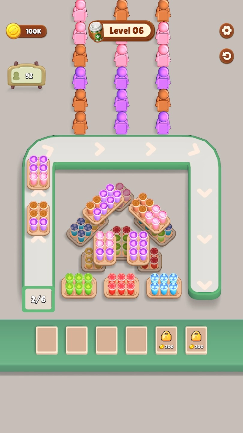3. 随着关卡的逐步深入,咖啡杯的颜色选择愈发丰富,顾客的需求也变得更加多样复杂,玩家需要具备更敏捷的反应速度与更灵活的策略思维,方能顺利通过每一关。