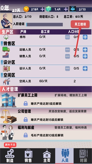 2、接着可以查看当前生产区的各种人员再点击培训;