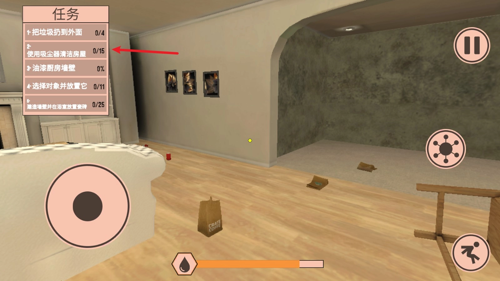 2、当你接到首个装修任务时,左上角会呈现具体的任务详情。