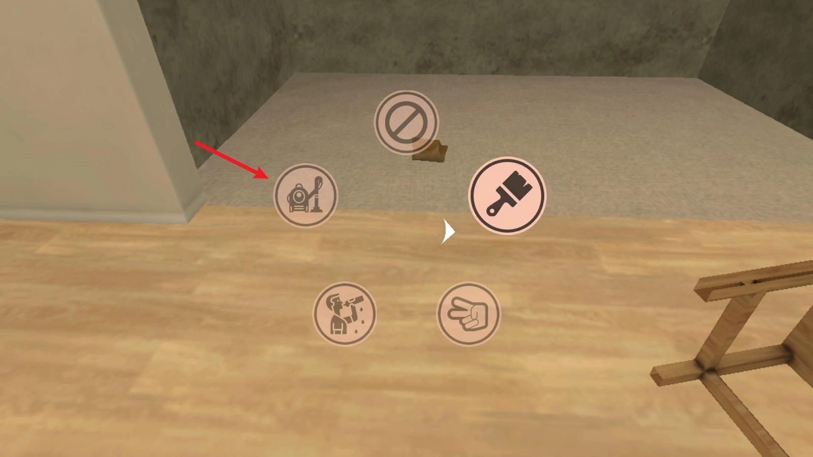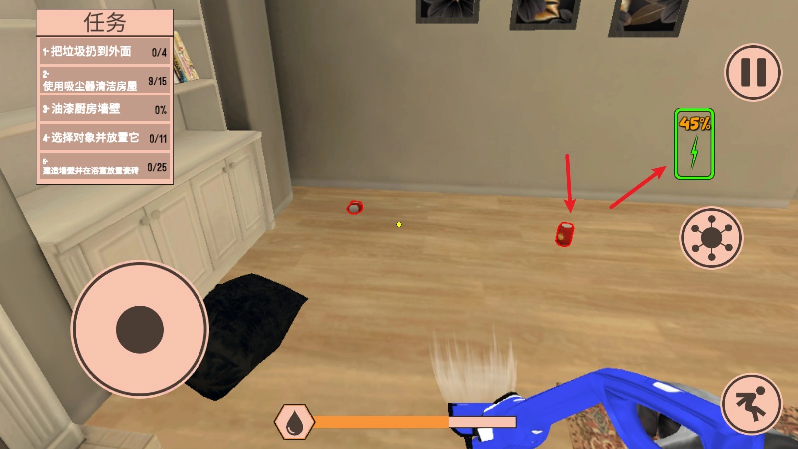 3、点击右侧的按钮,通过这里可以切换自己的行动,我们取出吸尘器。