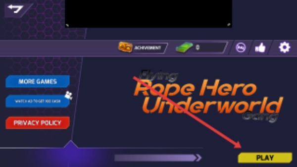 1、在游戏启动主页里,找到并点击【PLAY】按钮,进入游戏后操控绳索英雄,开启城市冒险之旅。