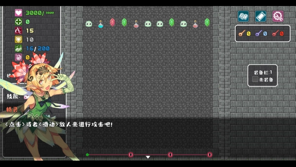 进入游戏后,观看部分剧情即可正式开始游玩。你可以通过点击或滑动屏幕来攻击敌人。只有怪物需要消灭,其他物品如宝石、钥匙、箱子等,只要它们到达屏幕底部就能自动获取;但如果是怪物到达底部,就会对你发起攻击。