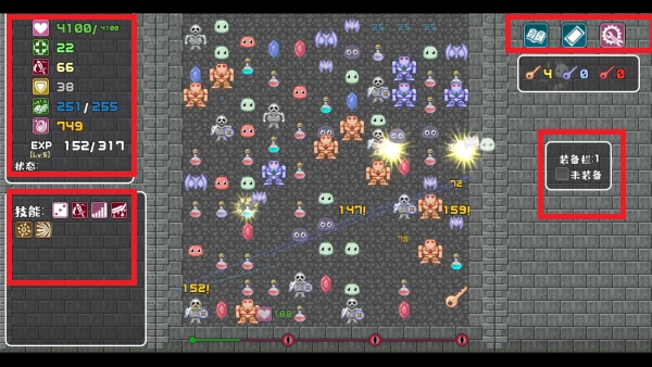 点击书本图标就能暂停游戏,点击怪物可以查看其属性,这样也能让自己稍作休息。其实玩法就是一直持续不断地打怪。