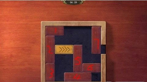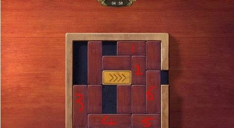 4、最后按照图中标记的顺序移动:先移动5,接着向下移动6,再移动黄色木块,之后按顺序移动其余木块即可。