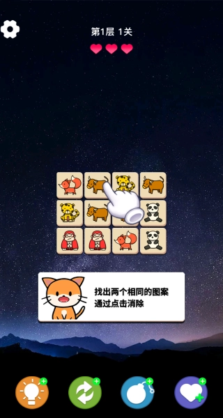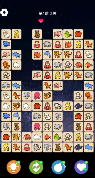 1、留意关卡里动物图案的分布情况,优先找出能直接连成三条线的图案,迅速触发消除效果,为接下来的操作腾出空间。