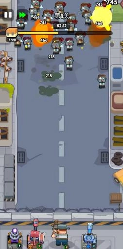 2、随着战斗逐步推进,僵尸的进攻愈发猛烈,玩家需持续调整战术策略,借助升级系统来增强自身的战斗能力。