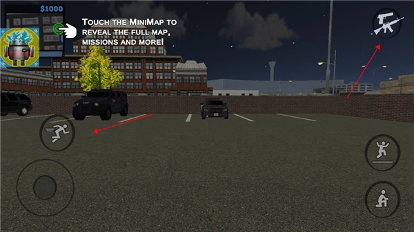 2、玩家能够自由操控角色进行奔跑与跳跃,游戏界面的右上角可挑选游戏武器;
