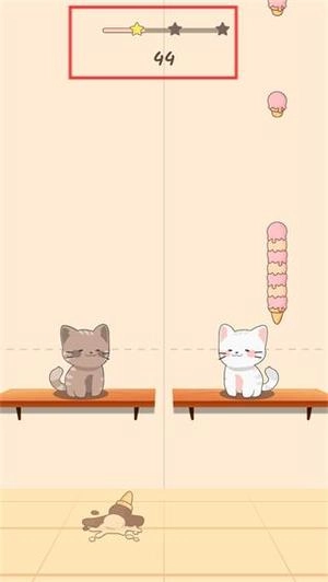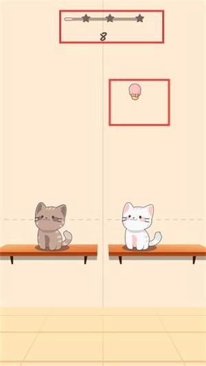 进入互动关卡后,拖动屏幕区域来调整白猫的位置,让它触碰到冰淇淋之类的道具,以此开启收集流程,推动任务进度向前。