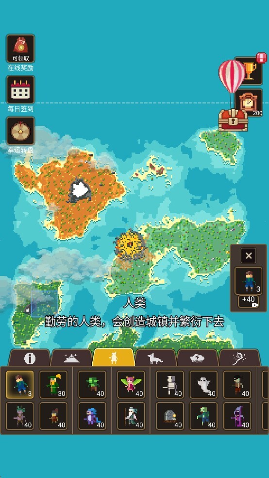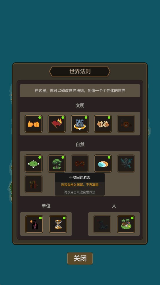 像素画风搭配3D引擎,各种的工具可以自由使用,观察每个文明的演变过程,游戏的细节拉满,玩家们将掌控世界的变化,高度自由的创造玩法,世界任你主宰,各种的工具可以自由的使用,一起试试看吧!