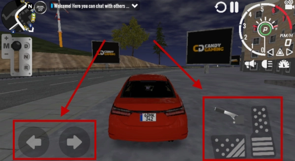 4、玩法十分简单,左侧的摇杆用于操控汽车移动,右侧的按钮则分别是油门键和刹车键。