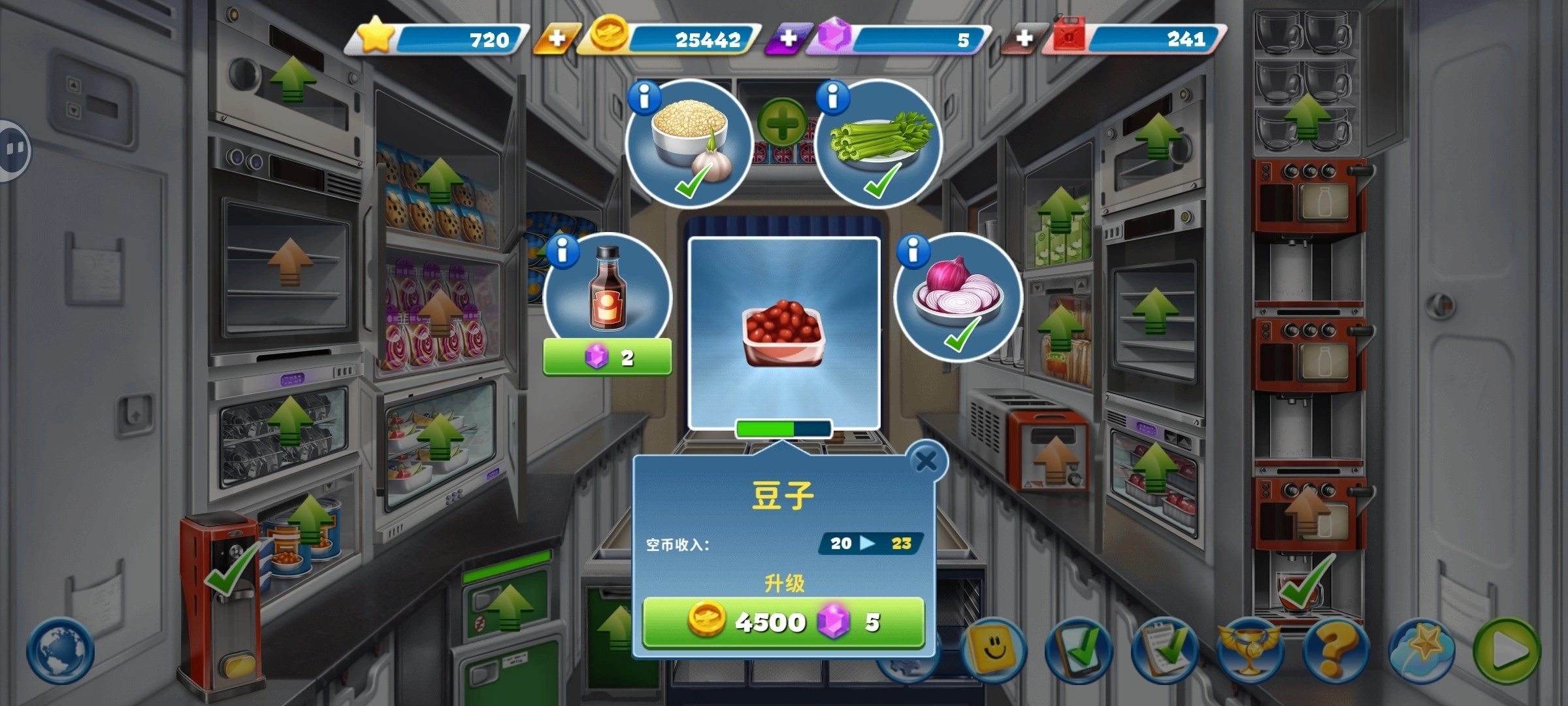 面包(此处没有展示),升到需要十个宝石的前一级