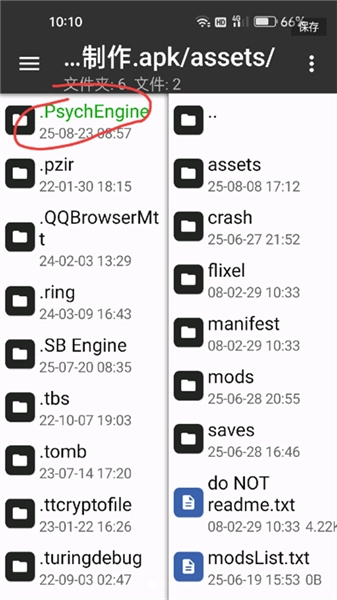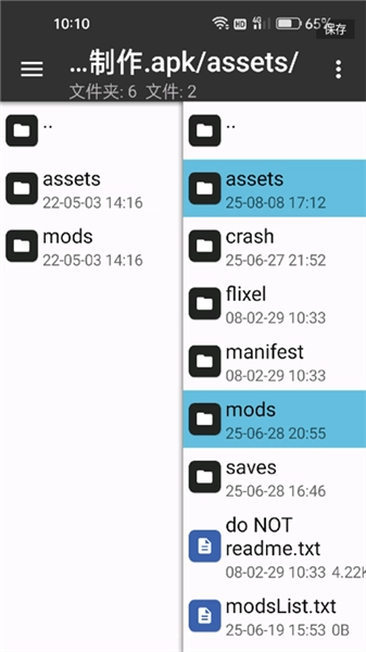 11、接着进入文件内部,找到assets和mod这两个文件夹。