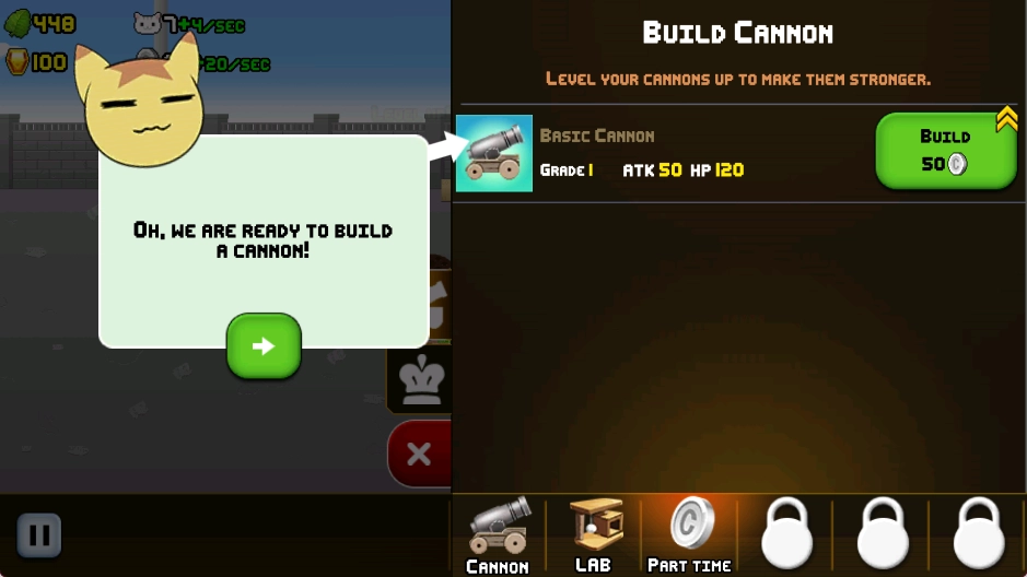 3、自动战斗机制:玩家离线期间,猫咪炮台依旧会自动攻击敌人并积累收益,这一设计充分体现了“闲置”玩法的核心理念。