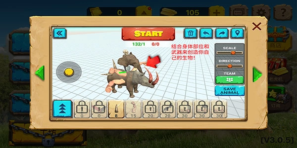 8、单位菜单的右侧配备了功能强大的动物创建系统,你可以在此处对武器与身体部位进行组合操作。