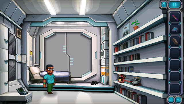 ,一款像素风格的点击式冒险解谜类。玩家们将会进入到一艘飞船之中,在这里我们需要搜寻场景中的各种道具和线索,通过组合这些道具与场景中的物品交互来解开谜题,完成每一章节的故事剧情,继续挑战更多的内容。游戏内一共有着五章精彩内容可以体验,每一章节都是全新的场景,带给你不一样的解谜体验!