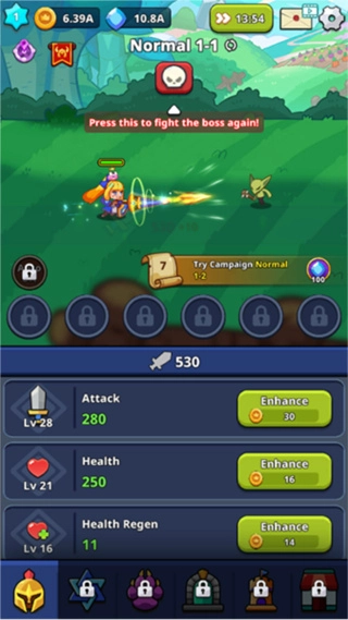 2、加入了放置机制的玩法,让玩家即使处于离线状态,也能持续战斗并获取资源。