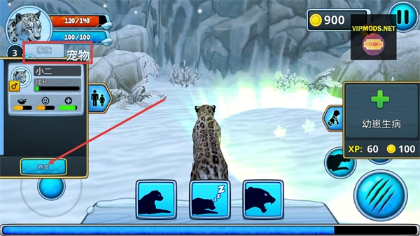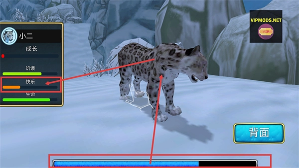 3、打破资源束缚,无需耗时积累即可直接解锁高阶技能、强化核心属性,快速提升雪豹战力,大幅降低生存挑战难度。