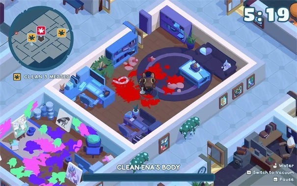 1、面对各种各样脏乱的场景,你得借助道具把它们清理干净,之后顺利撤离就可以了。